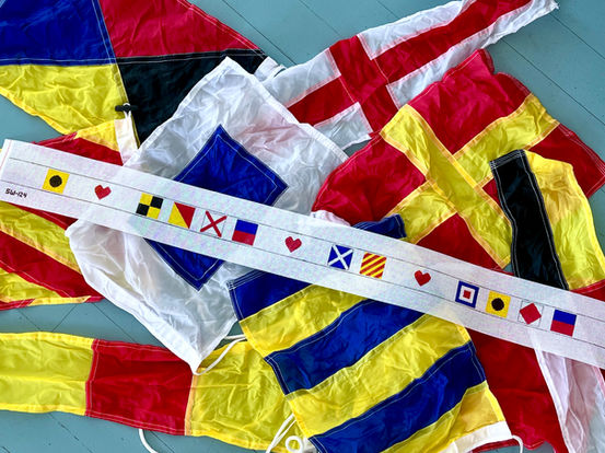 Belt which spells out "I Love My Wife" in nautical signal flags